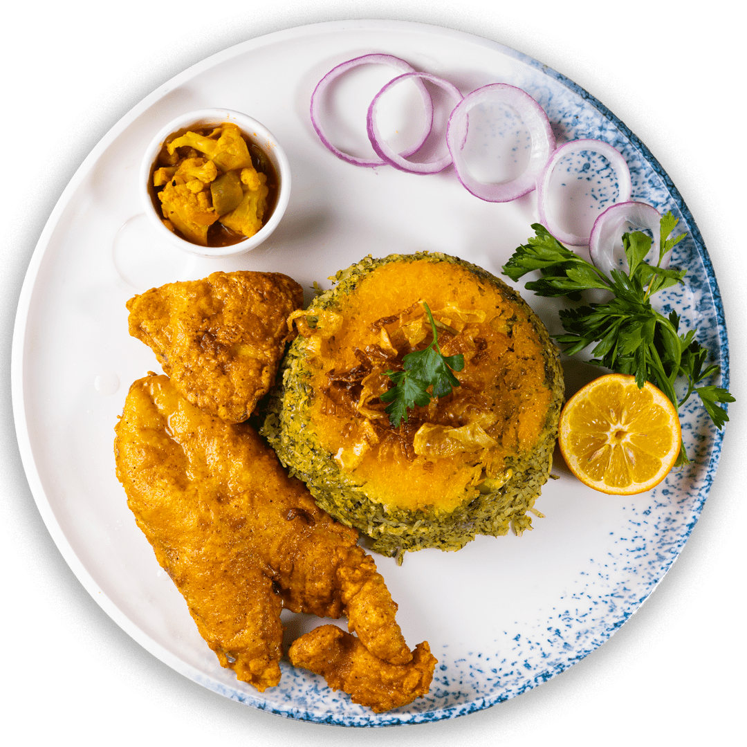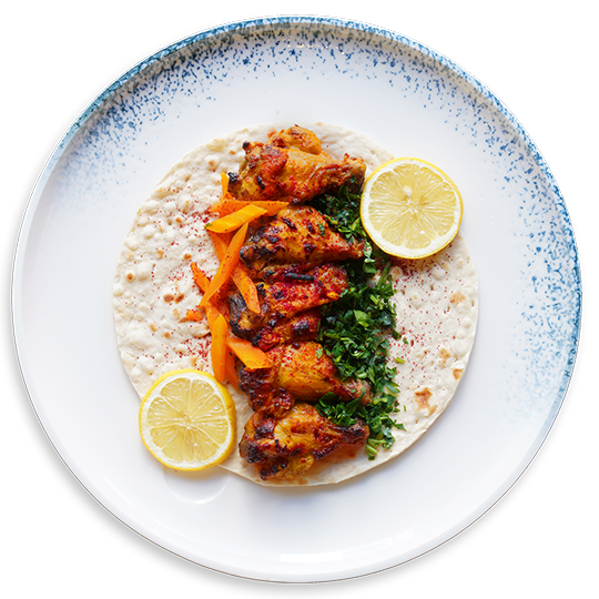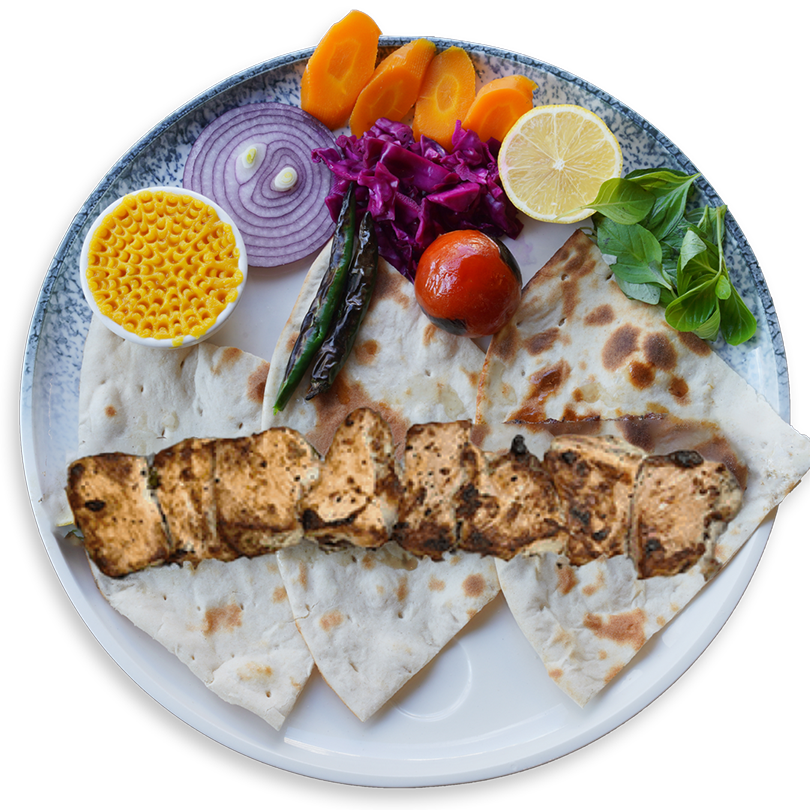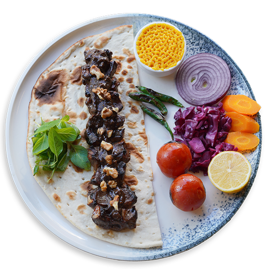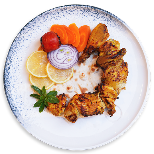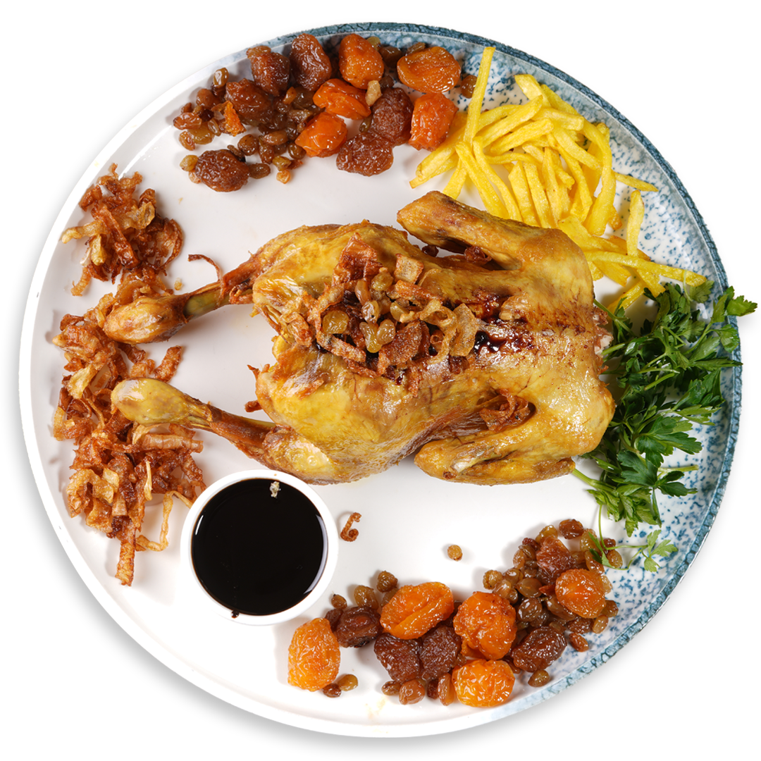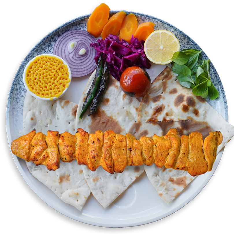 ( ۳ تکه استیک مرغ گریل .سس قارچ. سیب زمینی سرخ شده . مخلفات )