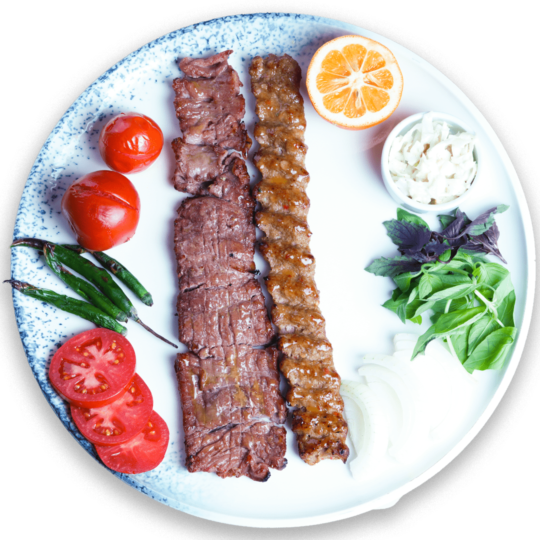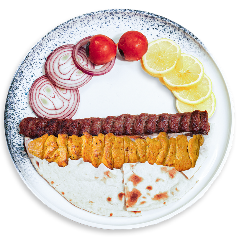 ( ۳ تکه استیک مرغ گریل .2 عدد همبر دست ساز .سس قارچ. سیب زمینی سرخ شده . مخلفات )